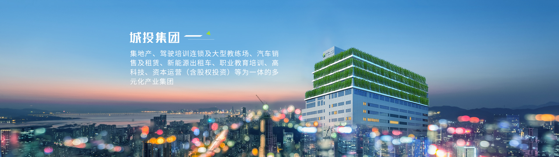 城投集團堅持“愛黨愛國、孝敬父母”的核心企業(yè)文化,主要業(yè)務(wù)為高科技、互聯(lián)網(wǎng)、基金投資、地產(chǎn)開發(fā)、職業(yè)教育培訓(xùn)、駕駛培訓(xùn)、汽車銷售及租賃、出租車運營等。